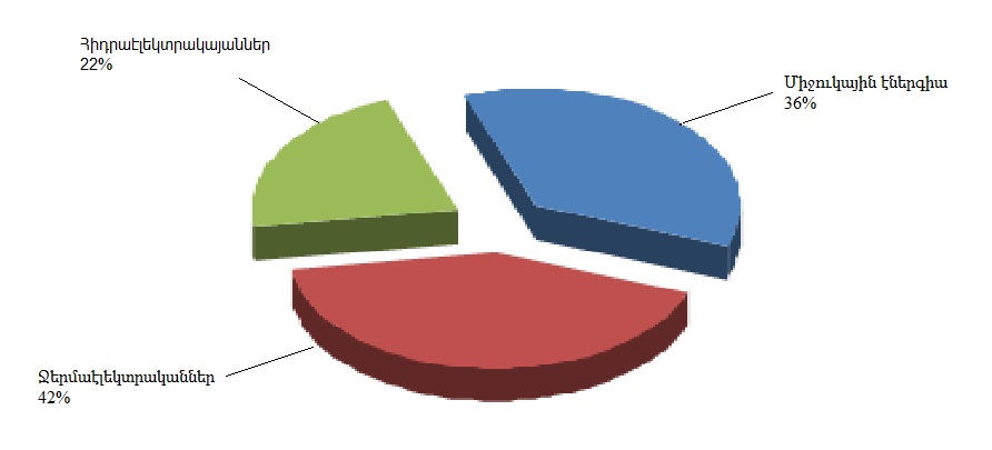 Հայաստանում արտադրվող էլեկտրաէներգիայի ընդհանուր արտադրության մեջ ատոմային էներգետիկայի մասնաբաժինը ներկայացված է նկար 1.1-1-ում: